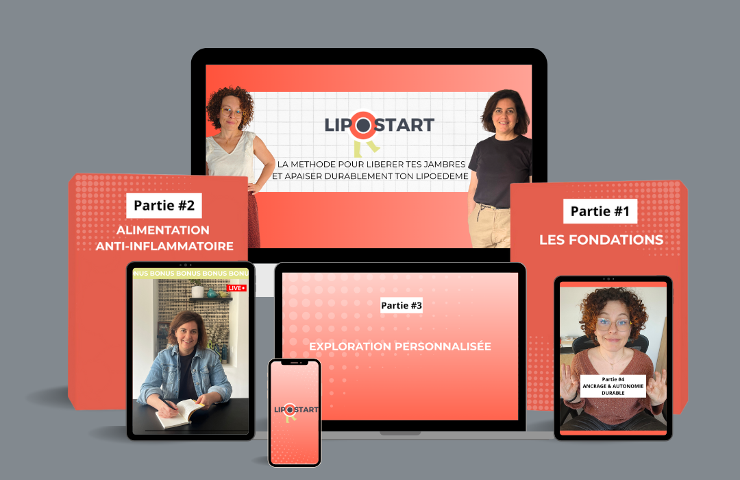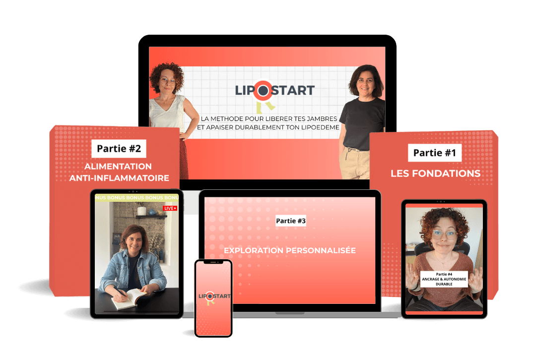 LipoStart n'est pas conçu pour te faire maigrir à tout prix. La perte de poids ne fait pas disparaitre le lipoedème. LipoStart est conçu pour apaiser ton lipœdème, réduire tes douleurs, et te réconcilier avec ton corps.