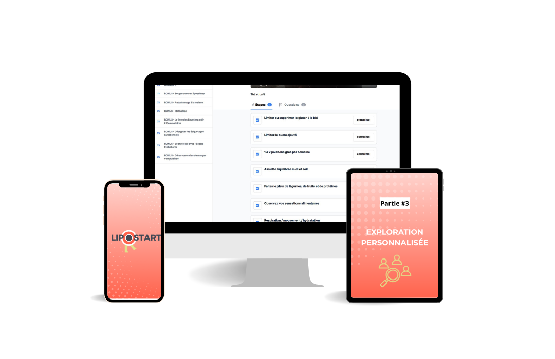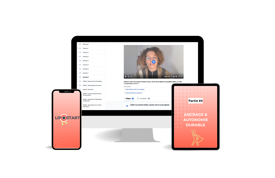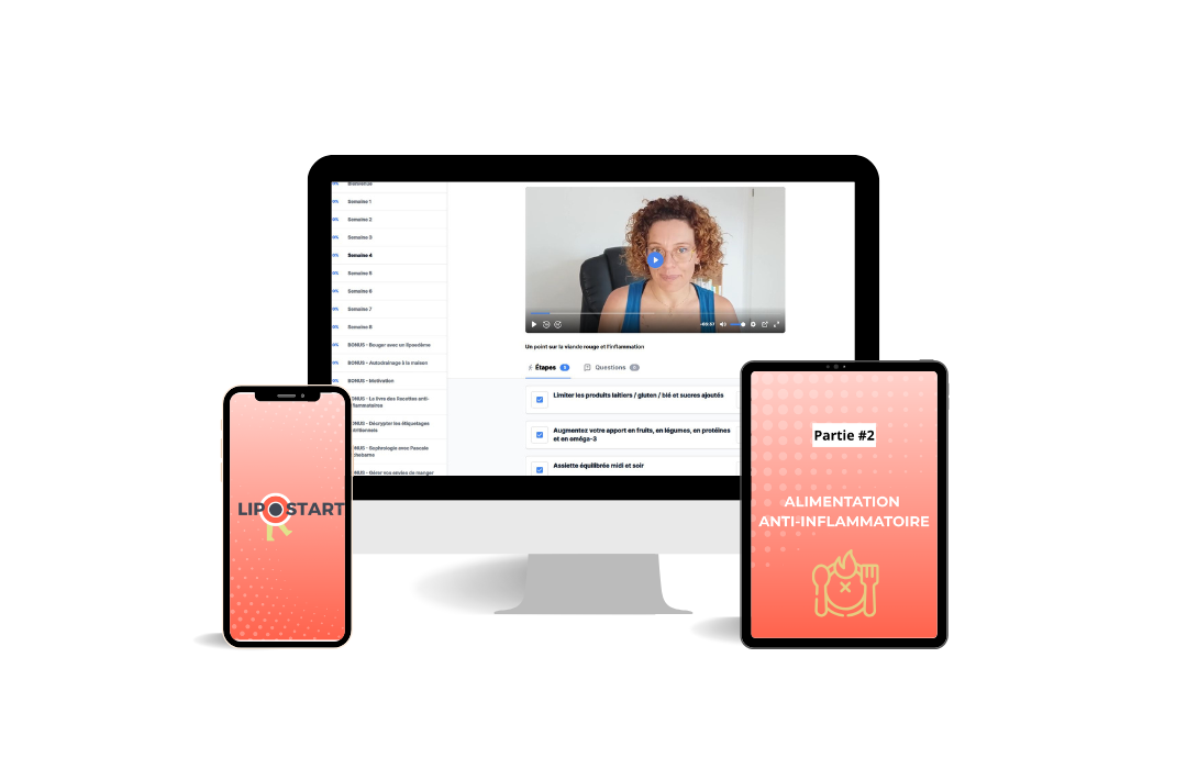 Tout ce que vous avez toujours voulu savoir sur l'alimentation anti-inflammatoire adaptée au lipoedème se trouve dans ce programme en plus d'un soutien quotidien